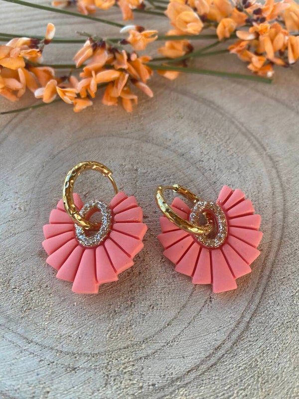 Chaque paire est façonnée à la main dans mon atelier à partir de pâte polymère, puis soigneusement assemblée sur des créoles dorées pour un rendu à la fois léger, moderne et lumineux.